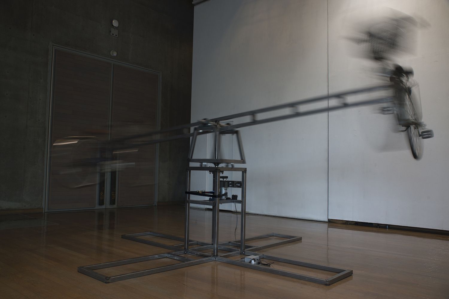 《自浮車》は2つの自転車が遠心力によって物理的に浮き上がりながら回転する装置です。